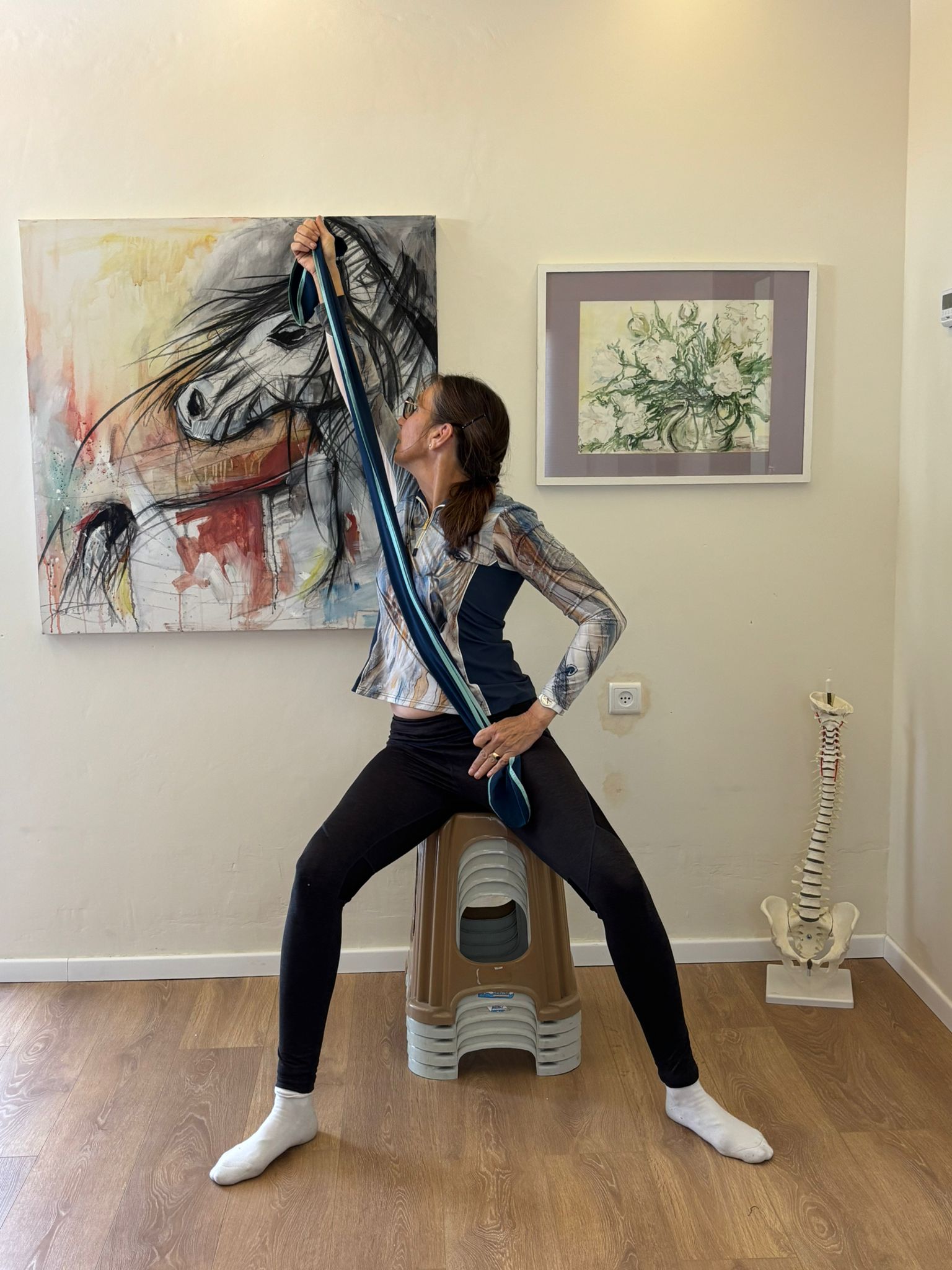 The strap supports gentle stretches to expand your body and gain freedom in the saddle: